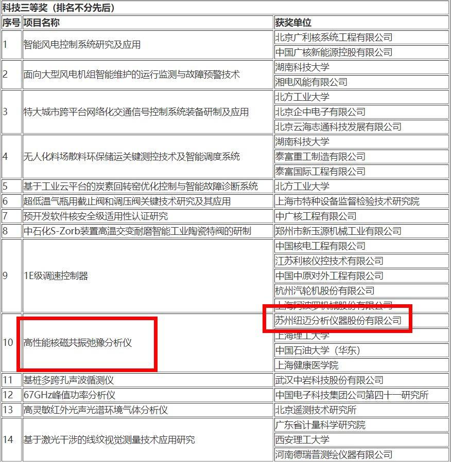 2018年10月11日,中国仪器仪表学会分析仪器分会会员单位好博网页版登录入口的“高性能核磁弛豫分析仪”荣获了中国仪器仪表学会科学技术三等奖。