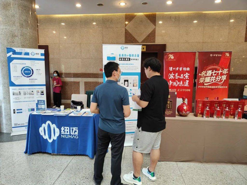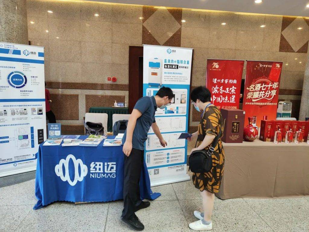 大会现场设置了部分优秀企业科技创新产品展示,供参与单位交流分享合作。作为本次会议的赞助单位,纽迈分析携低场核磁共振技术在鲜肉脂肪含量、食品干燥、农产品加工等多个应用解决方案亮相大会。