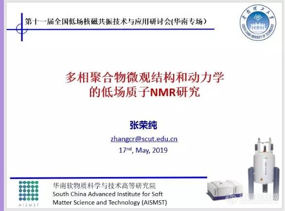 张荣纯教授的主讲,以“多相聚合物微观结构和动力学的低场质子NMR研究”为主题,研究方向主要是: 发展多尺度固体NMR新技术用于解决高分子及生物大分子中的重要科学问题,除介绍了1H NMR在聚合物水凝胶、可逆动态交联聚氨酯体系及在形状记忆高分子中的应用外,还特别分享了快速场循环(FFC) NMR方法在聚合物弹性体中应用的一些初步的实验数据
