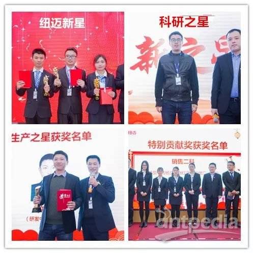 众人划桨开大船,纽迈的发展离不开敬业、勤勉、奉献的“牛马哥们”(纽迈人NIUMAGER的谐音善称)。在过去的一年里,纽迈涌现出无数先进个人和优秀团队,他们在各自平凡的岗位上默默耕耘,用勤劳和智慧取得了不平凡的成绩。为此,纽迈分析特举行了隆重的评优表彰大会,设立“纽迈之星”、“纽迈新星”、“科研之星”、“TOPSALES”、“销售之星”、“销售新星”、“勤勉之星”、“协作之星”、“生产之星”、“建议之星”、“优秀团队”以及“同舟共济五年、八年、十年长期服务奖”和“总经理特别贡献奖”等十余个奖项,来表彰这些杰出员工和优秀团队在2017年星光璀璨般的奉献!