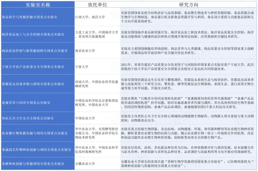 据不完全统计,食品领域目前共有10个全国重点实验室获批或重组完成。