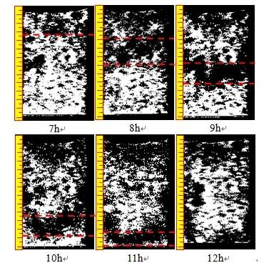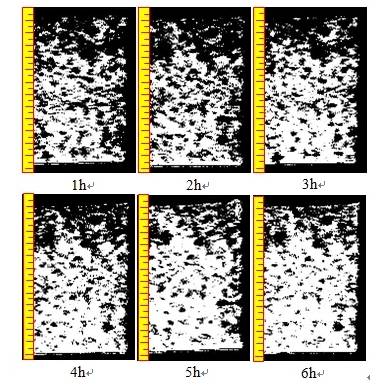 借助于低场核磁共振检测和成像技术,得到了H2O和(NH4)2SO4两种溶液浸矿过程的孔隙结构T2图谱,反演重构了孔隙结构分布图像。