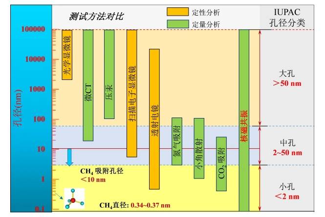 上一节介绍了甲烷分子的直径一般介于0.34~0.37nm,并且煤体中的绝大部分甲烷分子都吸附在小于10nm的孔隙中,在图1所述的方法中,核磁共振具有较大的孔径测试范围,且核磁共振技术具有无损性和测试的高效性。因此核磁共振技术能更加精确地表征煤体中甲烷吸附和渗流空间。