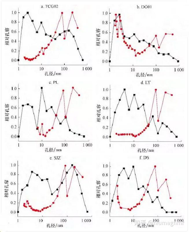 图5:6组煤样的NMPC与BJH孔径分布对比