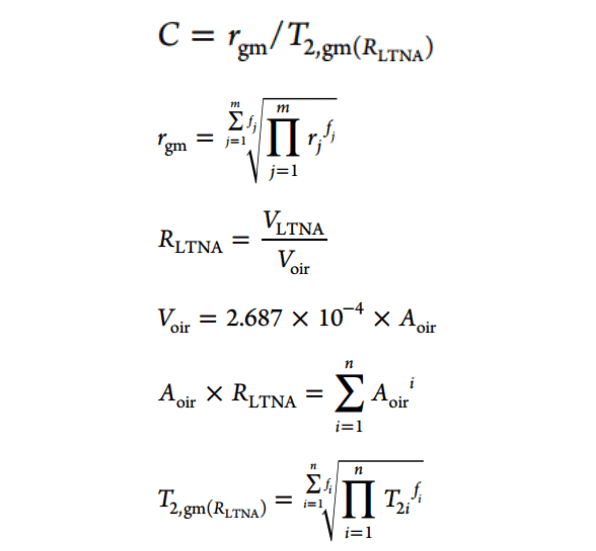 其中,rgm为DFT模型孔径分布的加权几何平均值;RLTNA为对应Voir的低温氮气吸附实验表征的孔隙体积占比;Voir为Soir状态的NMR孔体积;Aoir为Soir状态下的NMR累积信号幅值;T2gm(RLTNA)为对应RLTNA占比的Soir状态T2谱的T2加权几何平均。