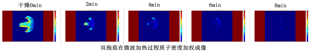 图1.2 双孢菇在微波加热过程质子密度加权成像
