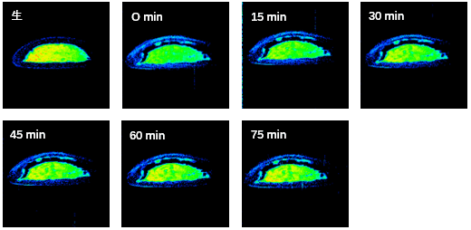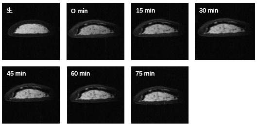 图2.2 不同冷却时间条件下菜包的矢状面质子密度像