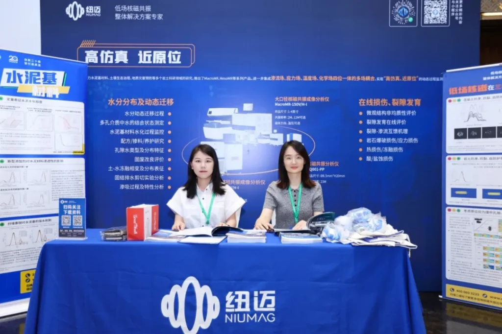 此次大会,纽迈重点呈现了低场核磁共振技术在岩土领域的一系列创新应用,吸引了众多参会者来展位前驻足交流。工作人员为前来交流的专家学者们介绍了纽迈推出的MacroMR、MesoMR等系列产品,进一步集成渗流场、应力场、温度场、化学场四位一体的多场耦合,可实现“高仿真,近原位”的动态过程监测。