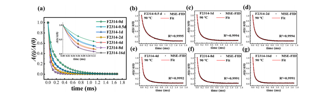图1:不同热处理时长的 F2314 样品在 90℃时归一化 MSE-FID 的衰减情况