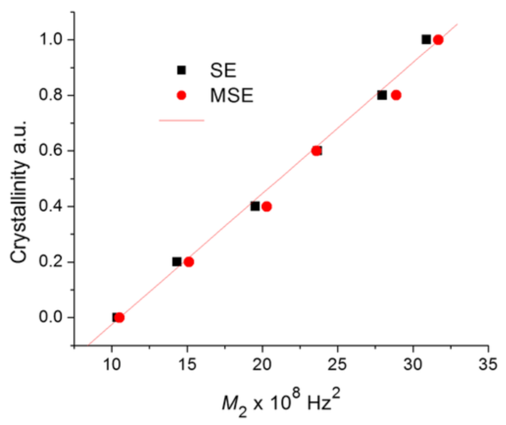 对于结晶性评价中的结晶度测量,良好的相关性结果清楚地表明,使用MSE序列的方法更省时省力。同时,这样跨领域研究的方法,也会因为低场核磁技术的不断普及而越来越受欢迎。