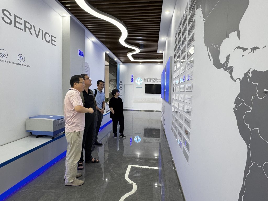 在纽迈分析董事长杨培强、总经理李向红等人的陪同下,江雷院士先后参观了公司历程展厅、设备展厅、客户体验中心及产品生产线,全面了解了纽迈在技术研发、产品制造与应用服务等方面的综合实力。杨培强董事长系统介绍了纽迈二十多年来坚持“政产学研用教”一体化的发展路径,围绕客户实际应用场景,专注低场核磁共振技术的持续创新与仪器制造,实现了从无到有、从有到好、从好到精的跨越发展,逐步打破国外技术垄断,在石油能源、岩土工程、食品农业、材料科学、生命科学等多个领域形成系统化的仪器产品与创新解决方案。